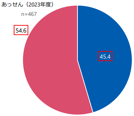 労働者の性別は、2023年度に男性45.4%、女性54.6%となり、今回初めて男女の比率が逆転しました。